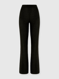 A straight-leg long women’s trouser that combines elegance and brightness thanks to refined vanise workmanship. Made from viscose blend with lame threads, it plays with iridescent reflections and light textures for a sophisticated, contemporary look. MORE DETAILS - Straight-leg long pants - Vanise knit - Viscose blend with lame threads Composition: EXTERNAL:85%Rayon, 13%Metal Fiber, 1%Elastane, 1%Polyamide Care instructions: Ironing maximum temperature 110°C - without steam ; Dry cleaning in tetrachloroethene - mild process ; Dry inside out ; Dry flat ; Do not tumble dry ; Iron inside out ; Iron with a cloth between ; Do not wash ; Do not bleach Made in: Romania Product ID DS25WI00BK01BYL905E