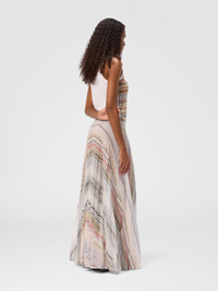 With its fluid construction and wrap-around cut, this women’s pleated long skirt in smooth striped knit reinterprets classic style through a contemporary lens. Made in a viscose blend with lame threads, it plays with light through the discreet brilliance of the yarn. Fine pleats move gracefully, drawing a dynamic and sophisticated silhouette. MORE DETAILS - Wrap skirt for women - Pleated plain striped knit - Viscose and lame filament blend Composition: EXTERNAL:59%Rayon, 37%Polyester, 4%Metal Fiber; LINING : 82%Polyester, 18%Elastane Care instructions: Hand wash ; Ironing maximum temperature 110°C - without steam ; Wash inside out ; Wash in net bag ; Dry cleaning in tetrachloroethene ; Do not tumble dry ; Do not dry clean ; Wash separately ; Reshape when damp ; Do not wash ; Do not bleach Made in: Italy Product ID DS25WH11BK01F8SM9WF