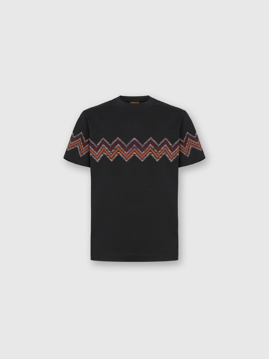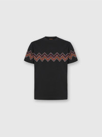 Essential yet highly distinctive, this men’s short-sleeve T-shirt in 100% cotton jersey best expresses Missoni’s iconic aesthetic. The clean lines of the solid color piece are enhanced by a large intarsia chevron insert, made with slubbed workmanship that gives depth and movement to the motif. A distinctive detail that transforms an everyday item into a statement of authentic style. MORE DETAILS - T-shirt short sleeve - Regular fit - 100% cotton - Cotton jersey - Maxi chevron slub intarsia Composition: EXTERNAL:100%Cotton Care instructions: Ironing maximum temperature 110°C - without steam ; Wash max 30°C - Mild process ; Dry cleaning in tetrachloroethene ; Do not tumble dry ; Do not bleach Made in: Romania Product ID US25WL04BJ00ONS91PD