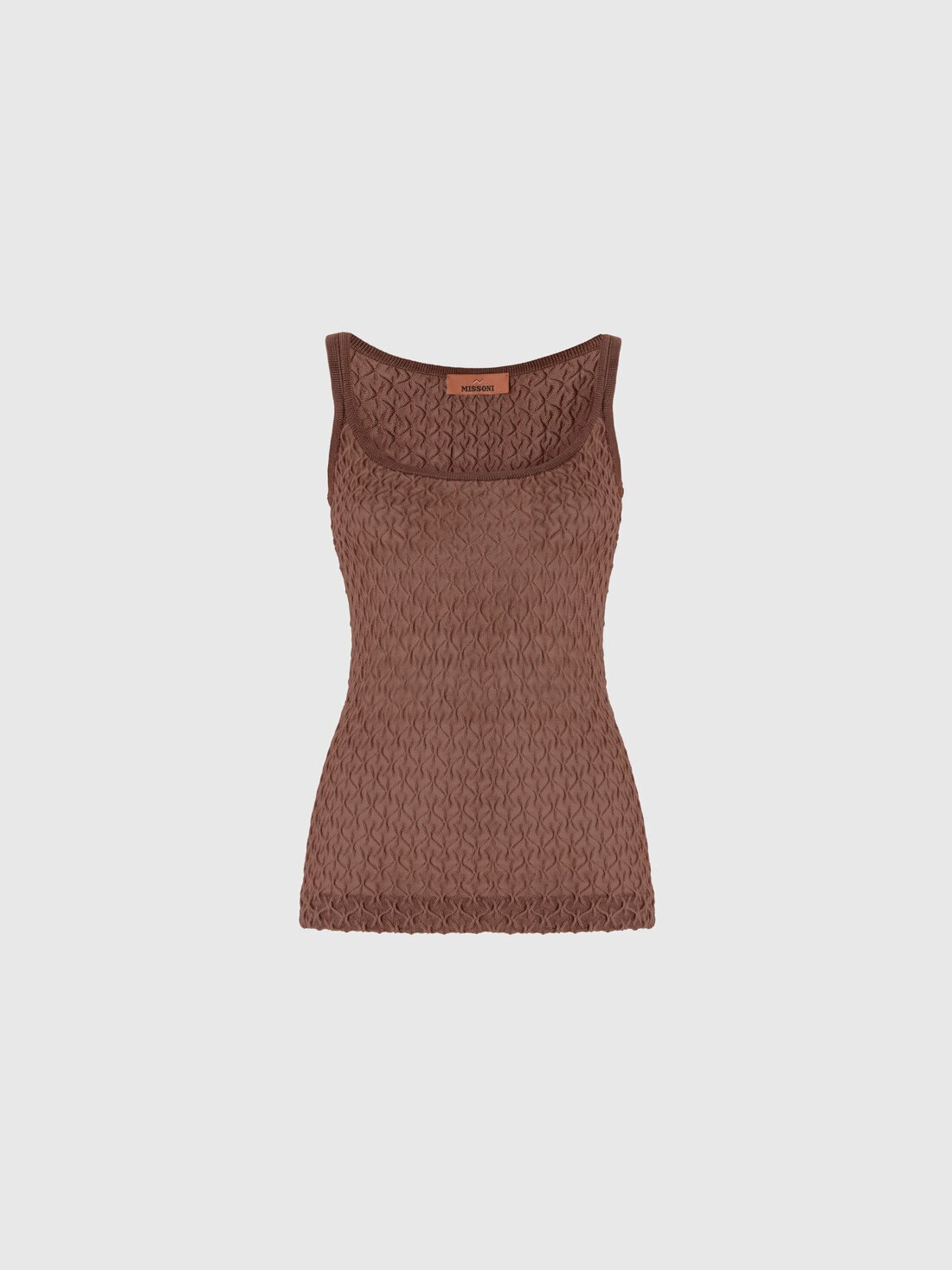 An essential and sophisticated women’s tank top, defined by raschel lacework in ribbed solid color pattern. Made from wool and viscose blend with round neckline at the front, it expresses sober and refined femininity through polished textures and clean lines. MORE DETAILS - Tank top with round neckline - Raschel knit in raised lace pattern - Wool and viscose blend - Solid color Composition: EXTERNAL:54%Wool, 46%Rayon Care instructions: Ironing maximum temperature 110°C - without steam ; Dry cleaning in tetrachloroethene - mild process ; Dry flat ; Do not tumble dry ; Do not wash ; Do not bleach Made in: Italy Product ID DS25WK07BR012J81314