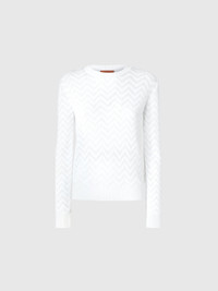This crew neck sweater is the essence of casual sophistication. The tone-on-tone chevron motif, combined with the classic line, makes the garment versatile for any occasion, always with that unmistakable Missoni touch. MORE DETAILS - Tonal chevron pattern - Classic Crew Neck - Comfortable fit Composition: EXTERNAL:52%Cotton, 46%Rayon, 1%Elastane, 1%Polyamide Care instructions: Dry cleaning in tetrachloroethene - mild process ; Ironing maximum temperature 110°C - without steam ; Do not tumble dry ; Dry flat ; Iron inside out ; Dry inside out ; Do not wash ; Do not bleach Made in: Italy Product ID DS25SN09BK044U14001