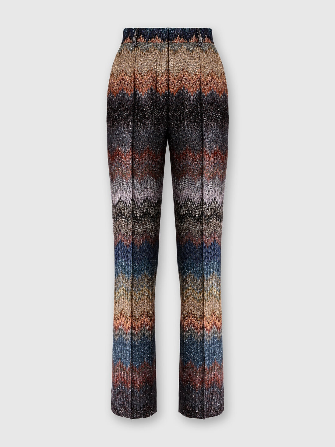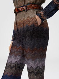 A trumpet trouser for women with a bold silhouette, characterized by raschel workmanship that creates a unique snake texture. Made in viscose blend with lame threads, it captures the light with metallic reflections, for a sophisticated and dynamic look. MORE DETAILS - Trumpet pants - Raschel snake pattern knit - Viscose blend with lame threads Composition: EXTERNAL:88%Rayon, 12%Metal Fiber; INTERNAL REINFORCEMENT:100%Polyester Care instructions: Wash max 30°C - Mild process ; Dry cleaning in tetrachloroethene - mild process ; Do not tumble dry ; Steam iron only ; Dry flat ; Do not iron ; Do not bleach Made in: Italy Product ID DS25WI0SBR012KS72LF