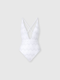V-neck zig zag lamé viscose one-piece swimsuit