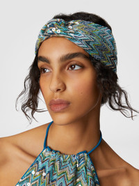 An accessory that catches the light with every movement, this viscose headband with a zig zag lame and sequin pattern is the epitome of brilliant style. Perfect for giving a touch of glamour and originality to any look. MORE DETAILS - Swim shorts - Iconic micro zig zag pattern - Gradient decoration Composition: EXTERNAL:88%Rayon, 12%Metal Fiber Care instructions: Ironing maximum temperature 110°C - without steam ; Dry cleaning in tetrachloroethene ; Do not tumble dry ; Do not wash ; Do not bleach Made in: Italy Product ID AS25SS03BR011YSM9O9