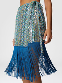 Zig zag lamé viscose sarong skirt with sequins and fringes
