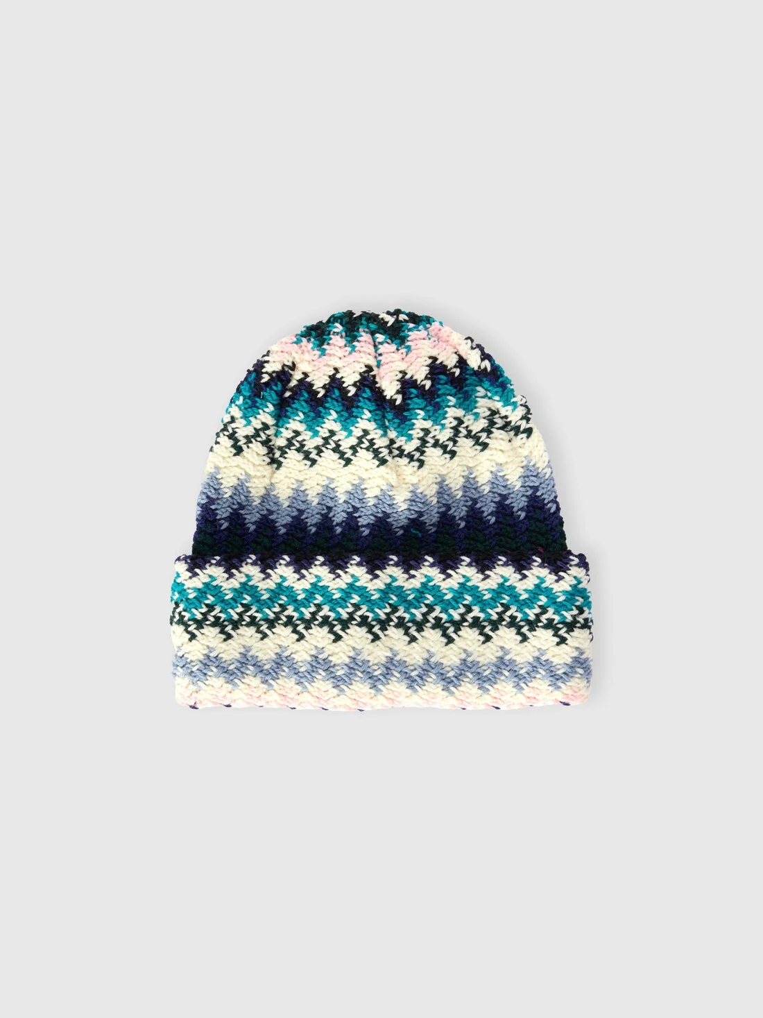 An accessory that warms you at first glance: here is the women’s wool hat. Made from a fine yarn with a handmade-effect knit and decorated with a zigzag pattern, this cuffed beanie will add a distinctive touch to any look. MORE DETAILS - Women’s cuffed hat - Zigzag wool knit - Handmade effect Composition: EXTERNAL:100%Wool Care instructions: Dry cleaning in tetrachloroethene ; Do not tumble dry ; Do not wash ; Do not iron ; Do not bleach Made in: Italy Product ID LS25WS01BV00IHSM67U