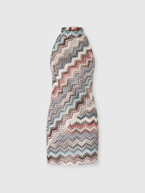 Mini dress with halter neckline and raschel detailing