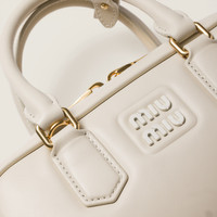 This Arcadie leather bag expresses a notion of fashion as a means of translating a reaction to current reality into material form. The light padding gives the bag a voluminous look and a cosmopolitan style. The lettering logo, which echoes the finishes of the metal hardware, crosses the boundaries between function and decoration and helps to define the distinctive and iconic aesthetic of the top-handle bag. - Product code: 5BB142_ACR3_F0K74_V_OON - Light padding - Leather handles - Detachable, adjustable 105 cm leather shoulder strap - Gold-tone hardware - Varnished metal lettering logo on the front - Zipper closure - Cotton satin lining with zipper pocket - With purse feet - Imported Height 10.5cm Width 22cm Length 7.5cm Materials Main material: Calfskin