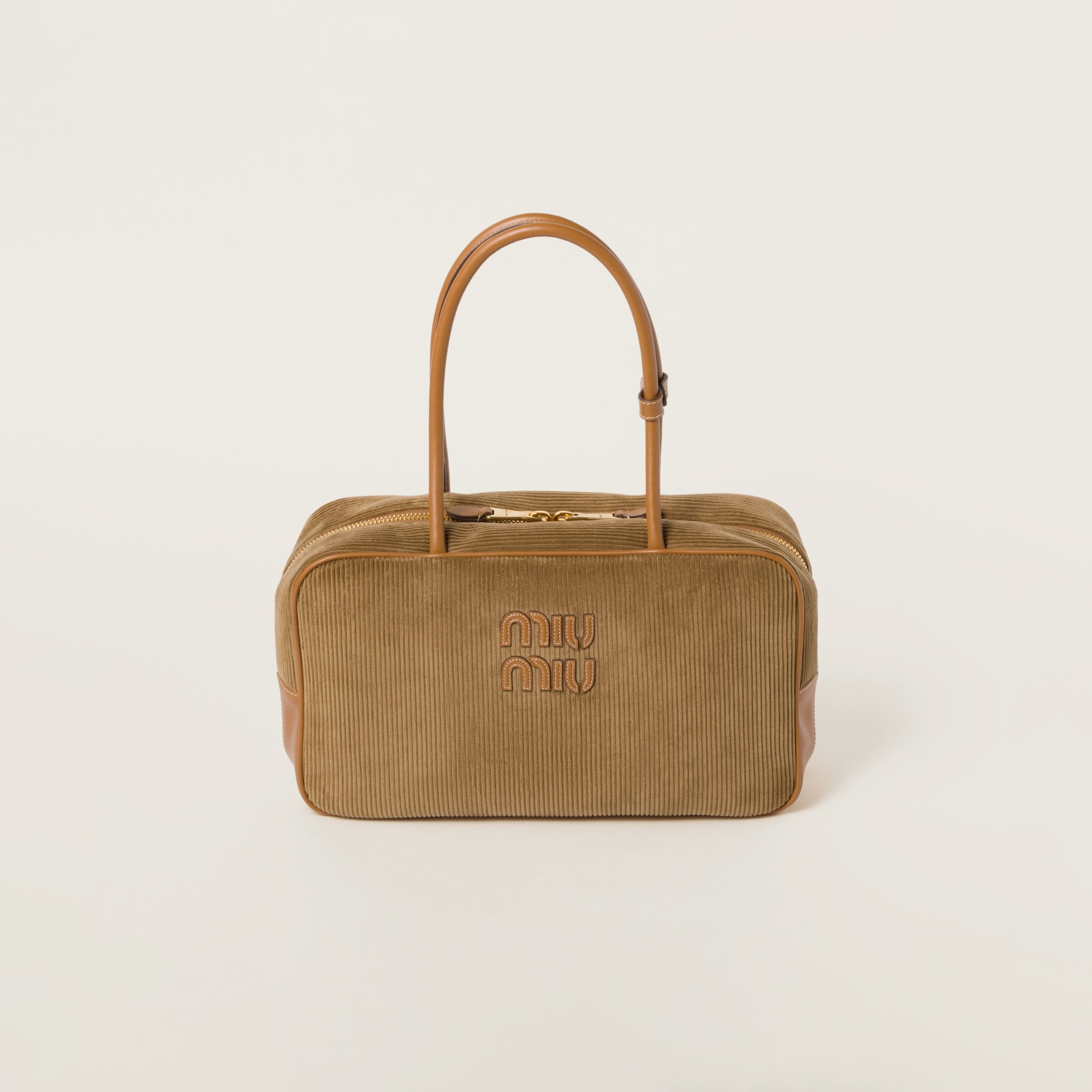 The distinctive texture of corduroy adds a retro charm to the Beau bag's unique design, which is accented with gold-tone hardware. The embroidered lettering logo completes the style with an iconic note. - Product code: 5BB163_2F81_F0401_V_OOO - Leather top handles - Gold-tone hardware - Leather lettering logo on front panel - Zip closure - Fabric lining with double zip pocket - Imported Height 20cm Width 34cm Length 10cm Materials Main material: Cotton