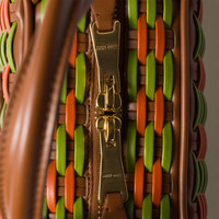 The iconic top-handle shape of the Beau bag expresses elegance and functionality. The colorful woven pattern characterizes this version in soft leather embellished with the lettering logo on the front and the special trick that adds a touch of personality and style. - Product code: 5BB173_2IBL_F04IU_V_OIM - Woven craftsmanship - Leather handles - Removable trick - Gold-tone hardware - Zipper closure - Cotton gabardine lining with double zipper pocket - Leather lettering logo on the front - Imported Height 11.5cm Width 28cm Length 8cm Materials Main material: Calfskin