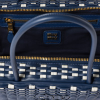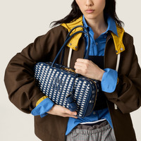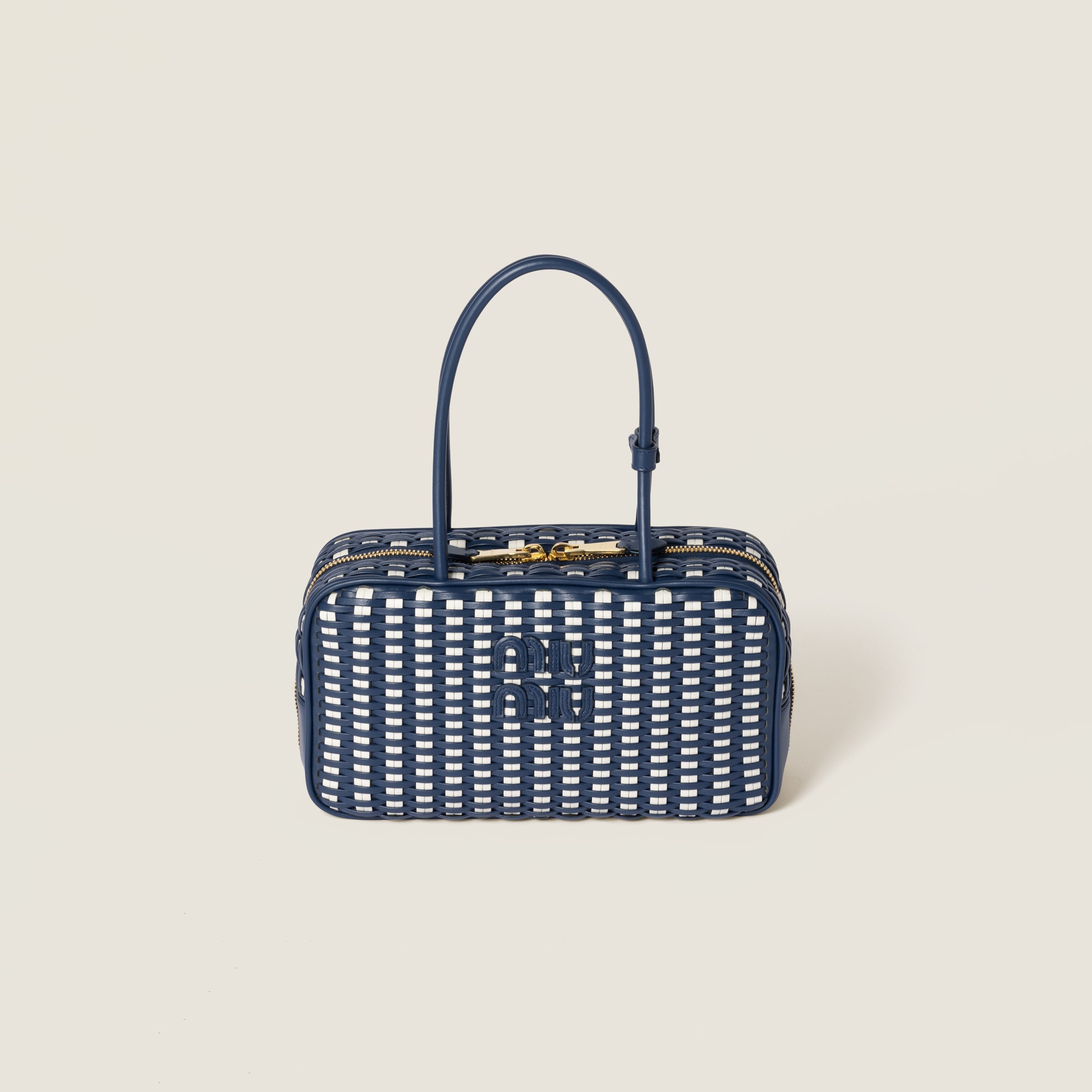 The iconic top-handle shape of the Beau bag expresses elegance and functionality. The colorful woven pattern characterizes this version in soft leather embellished with the lettering logo on the front and the special trick that adds a touch of personality and style. - Product code: 5BB172_2IBL_F0X63_V_OIH - Woven craftsmanship - Leather handles - Removable trick - Gold-tone hardware - Zipper closure - Cotton gabardine lining with double zipper pocket - Leather lettering logo on the front - Imported Height 17cm Width 30cm Length 8.5cm Materials Main material: Calfskin