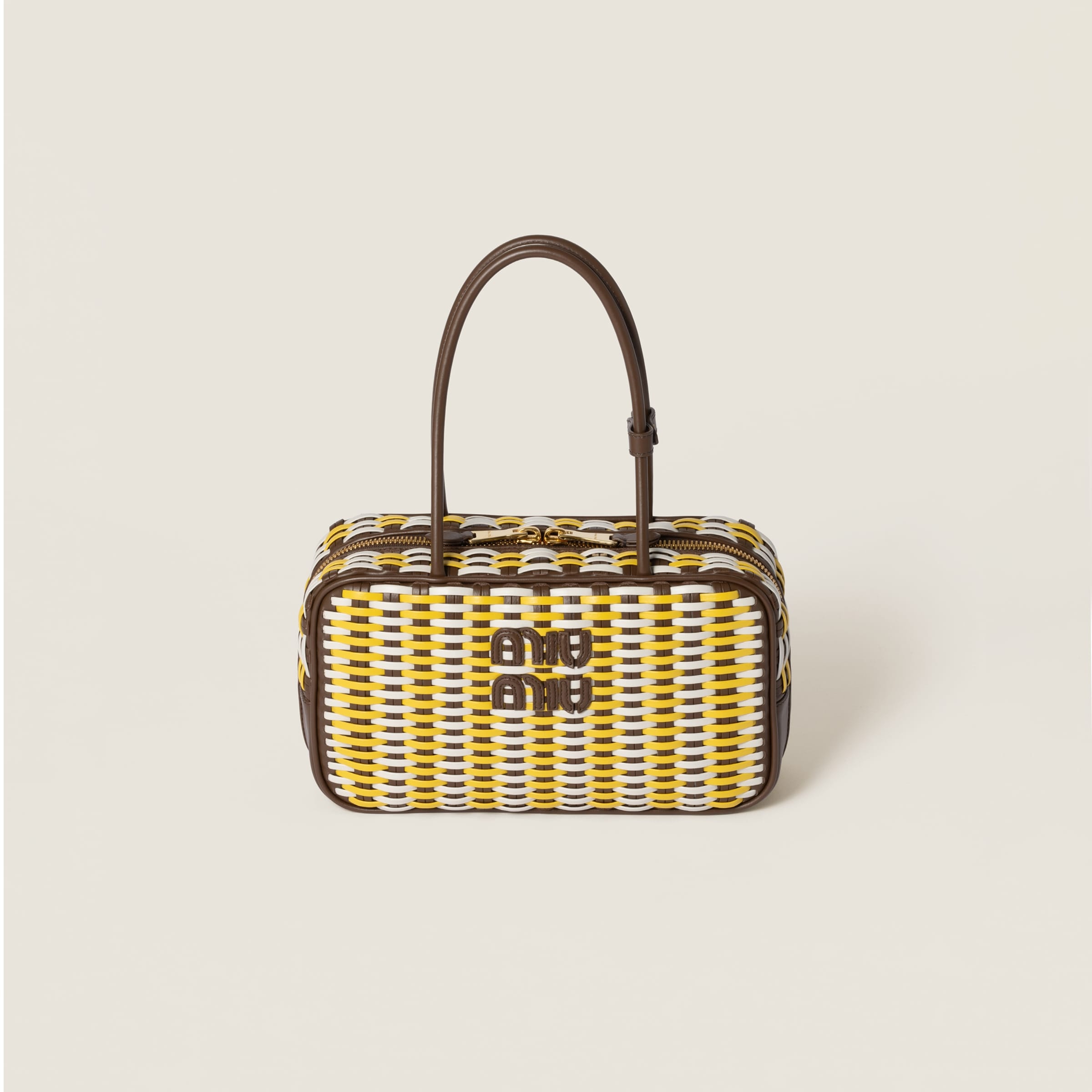 The iconic top-handle shape of the Beau bag expresses elegance and functionality. The colorful woven pattern characterizes this version in soft leather embellished with the lettering logo on the front and the special trick that adds a touch of personality and style. - Product code: 5BB172_2IBL_F04HB_V_OIH - Woven craftsmanship - Leather handles - Removable trick - Gold-tone hardware - Zipper closure - Cotton gabardine lining with double zipper pocket - Leather lettering logo on the front - Imported Height 17cm Width 30cm Length 8.5cm Materials Main material: Calfskin