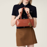 The Beau bag combines retro inspiration and a contemporary spirit. The distinctive top-handle silhouette and trick detail enhance its functionality and character. - Product code: 5BB173_2CRW_F0033_V_OTM - Leather handles - Removable trick - Gold-tone hardware - Zipper closure - Cotton satin lining with zipper pocket - Embossed lettering logo on the front - Imported Height 11.5cm Width 28cm Length 8cm Materials Main material: Calfskin