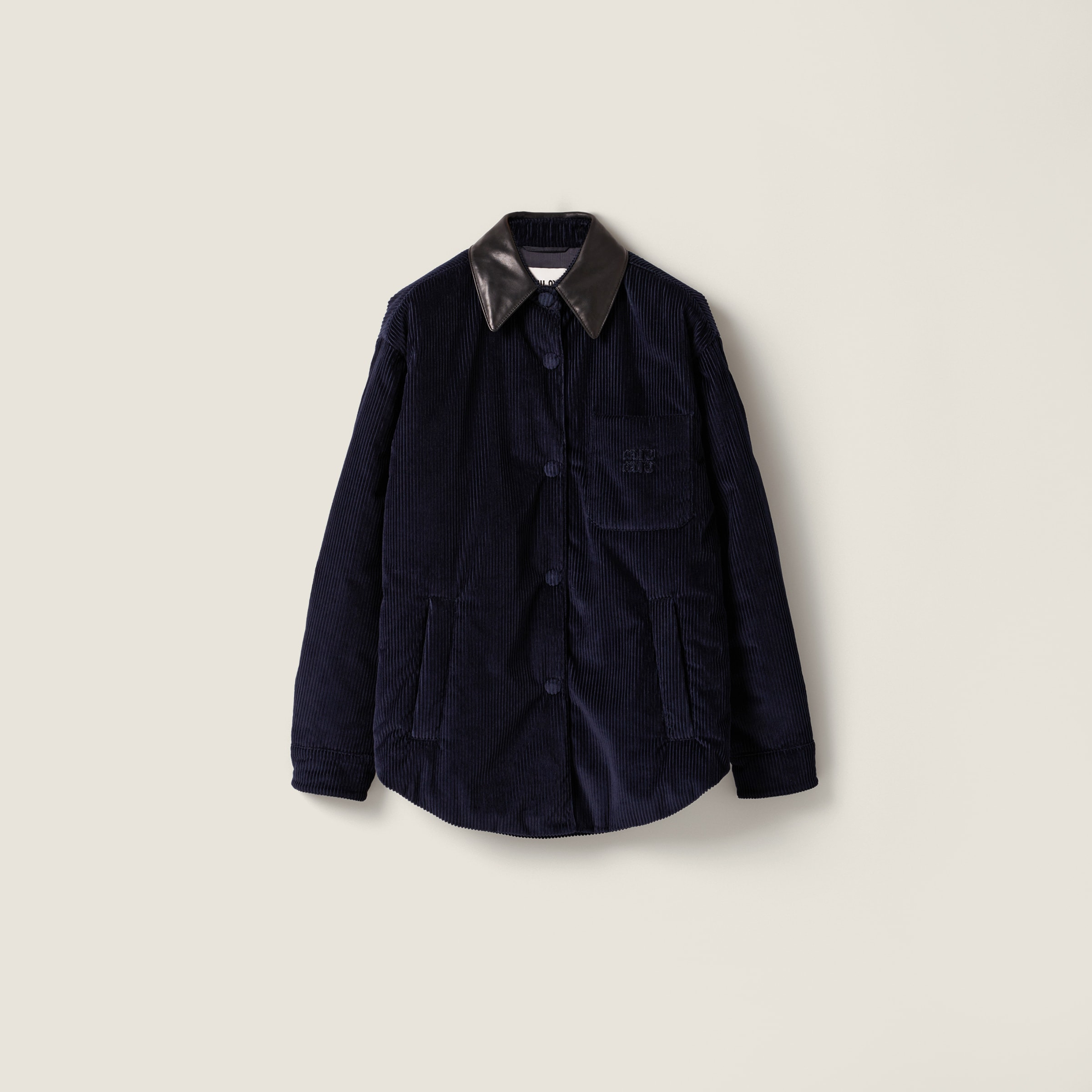 The classic shirt design is reinterpreted through unique corduroy texture and light padding, adding versatility to the silhouette. The nappa leather collar and tone-on-tone embroidered logo enhance its iconic style. - Product code: ML1322_179R_F0008_S_OOO - Oversized fit - Eco down padding - Shirt collar - Long sleeves with strap and button - Cuffs with tab and button - Welt pockets - Embroidered logo - Imported - The model is 180 cm tall and wears a size 38 Height 78cm Materials Main material: 100% Cotton