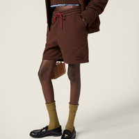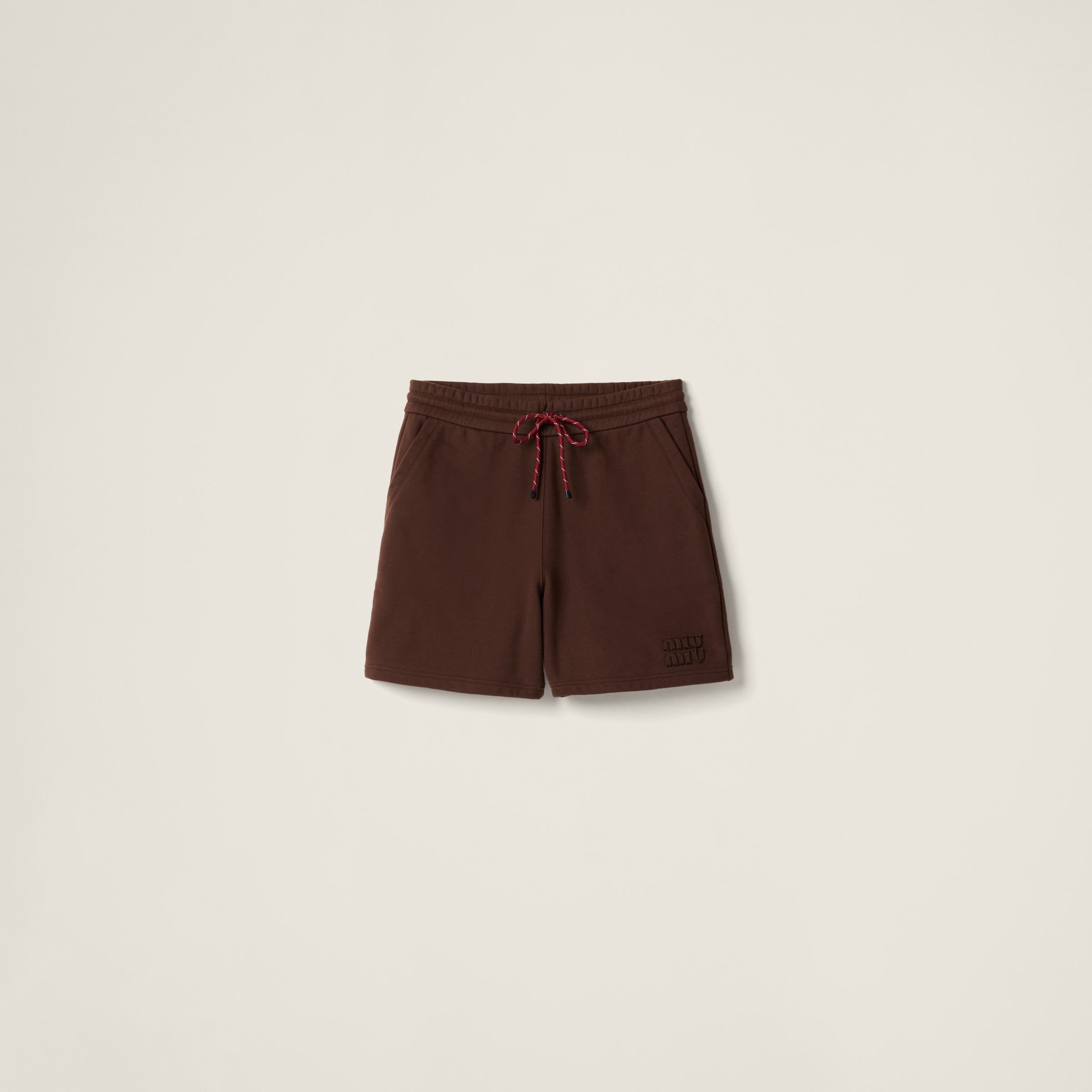 Miu Miu's wardrobe classics are reinterpreted in seasonal colors and elements. These shorts are distinguished by the drawstring with two-tone cord and iconic embroidered logo. - Product code: MJP340_15AV_F0324_S_OOO - Straight fit - Unlined garment - Angled slash pockets - Straight hem - Embroidered logo - Imported - The model is 179 cm tall and wears a size 38 Height 50cm Materials Main material: 100% Cotton