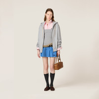 The iconic Miu Miu wardrobe finds a new seasonal interpretation in the relaxed fit of this cotton fleece zipper hoodie with intarsia logo that enriches versatile looks with a lifestyle spirit. - Product code: MJL085_17JV_F0031_S_OOO - Oversized fit - Unlined garment - Long sleeves with ribbed knit cuffs - Front zipper closure - Straight ribbed knit hem - Angled slash pockets - Intarsia logo - Imported - The model is 180 cm tall and wears a size 38 Materials Main material: 100% Cotton
