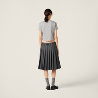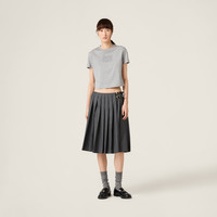 The embroidered Miu Miu logo stands out against the simple lines of this cotton jersey tee, thanks to its iconic character. - Product code: MJN483_1YXT_F0031_S_232 - Regular fit - Crew-neck - Short sleeves - Embroidered logo - Twin-needle hem - Imported - The model is 180 cm tall and wears a size 38 Height 70cm