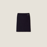 Miu Miu reinterprets the classic pencil silhouette in this cotton piqué skirt. The side slit adds lightness to the garment while the embroidered logo completes the design with an iconic note. - Product code: MJD209_14RW_F0008_S_OOO - Pencil silhouette - Embroidered logo - Side slit - Twin-needle hem - Imported - The model is 177 cm tall and wears a size 38 - Height: 59cm