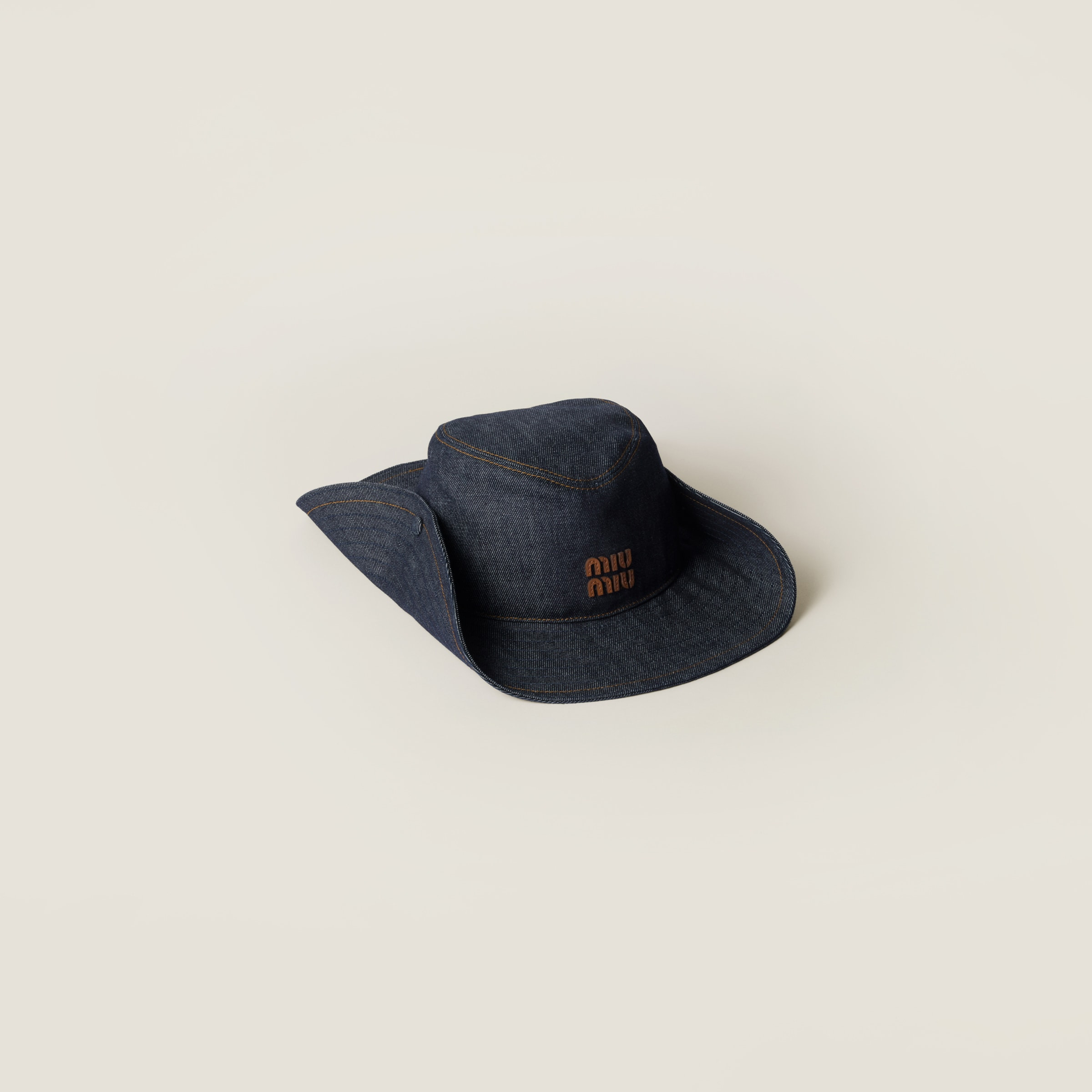 Denim, a distinctive element of Miu Miu style, offers a new expression of the cowboy silhouette made iconic by the leather logo and contrasting stitching. - Product code: 5HC221_ACRR_F0S30 - Leather lettering logo - Drill lining - Imported Materials Main material: Cotton