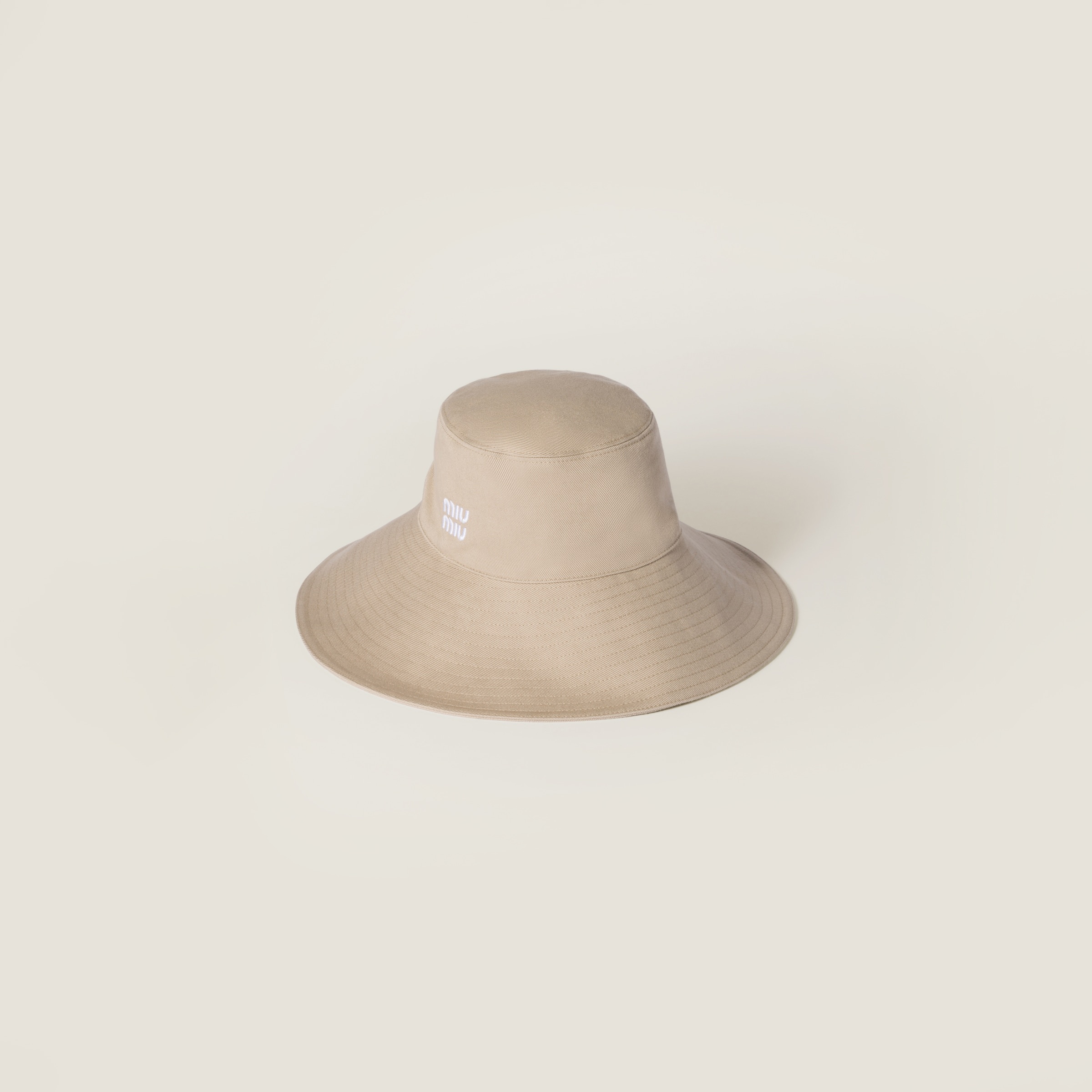 This denim hat has a distinctive, sporty character emphasized by the two-tone cord and Miu Miu logo elements. - Product code: 5HC220_2CR1_F0D2X - Washed treatment - Embroidered logo - Imported Materials Main material: Cotton