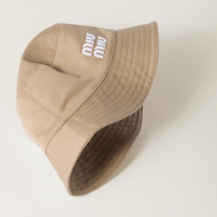 The classic bucket hat celebrates its lifestyle essence through this drill version and embroidered logo in a contrasting color that define the iconic, casual style of the Miu Miu wardrobe. - Product code: 5HC196_ADXI_F011P - Embroidered logo - Faille lining - Imported Materials Main material: Cotton