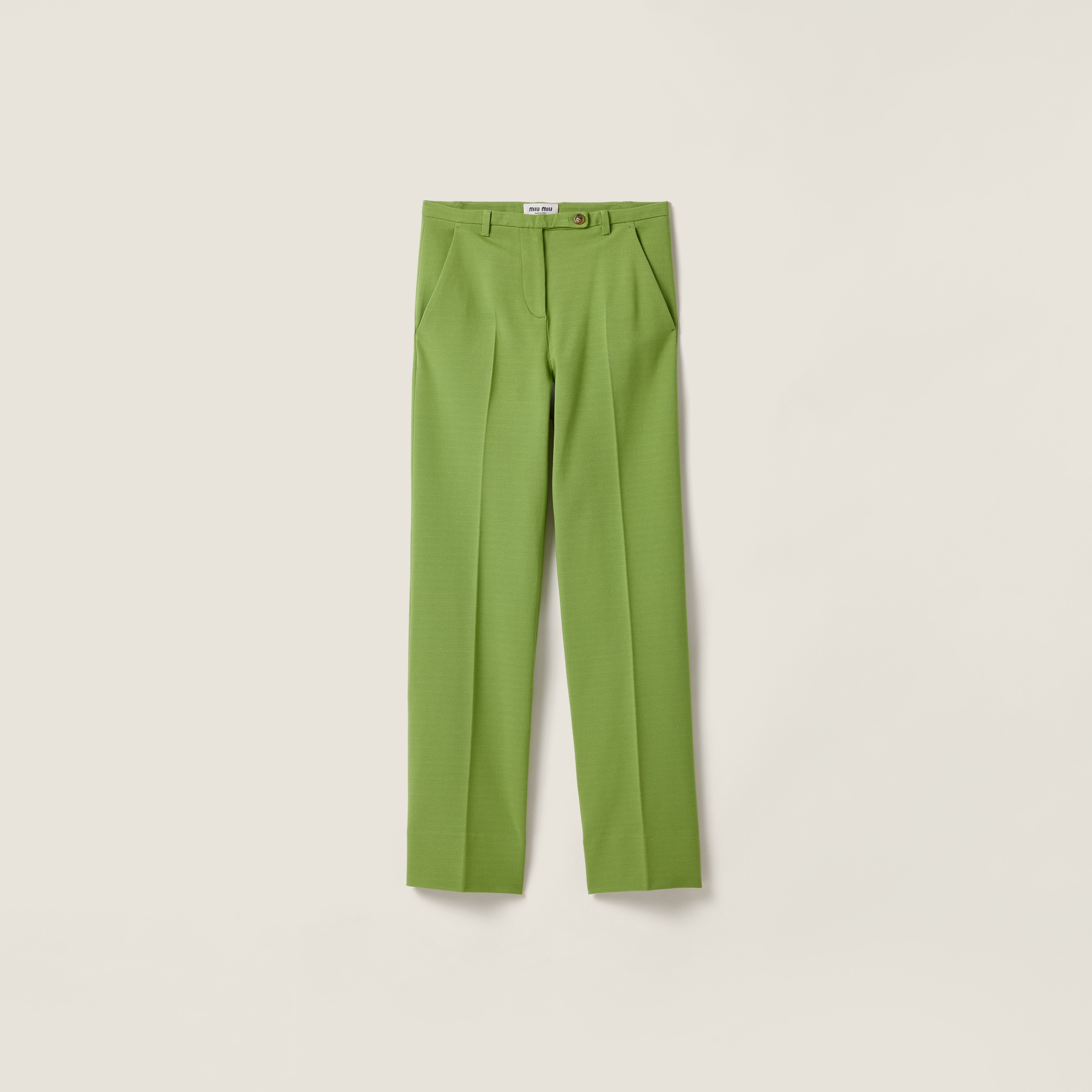 These knit pants stand out for their fabric stitch and a contemporary attitude that reinterprets simplicity with clean lines redefined by bold details full of character. - Product code: MP1931_18FQ_F0089_S_OOO - Menswear fit - Unlined garment - Zipper fly with button - Angled front slash pockets - Back welt pockets - Embroidered logo - Imported - The model is 178 cm tall and wears a size 38 Height 110cm Materials Main material: 4% Elastane 11% Polyamide 85% Viscose