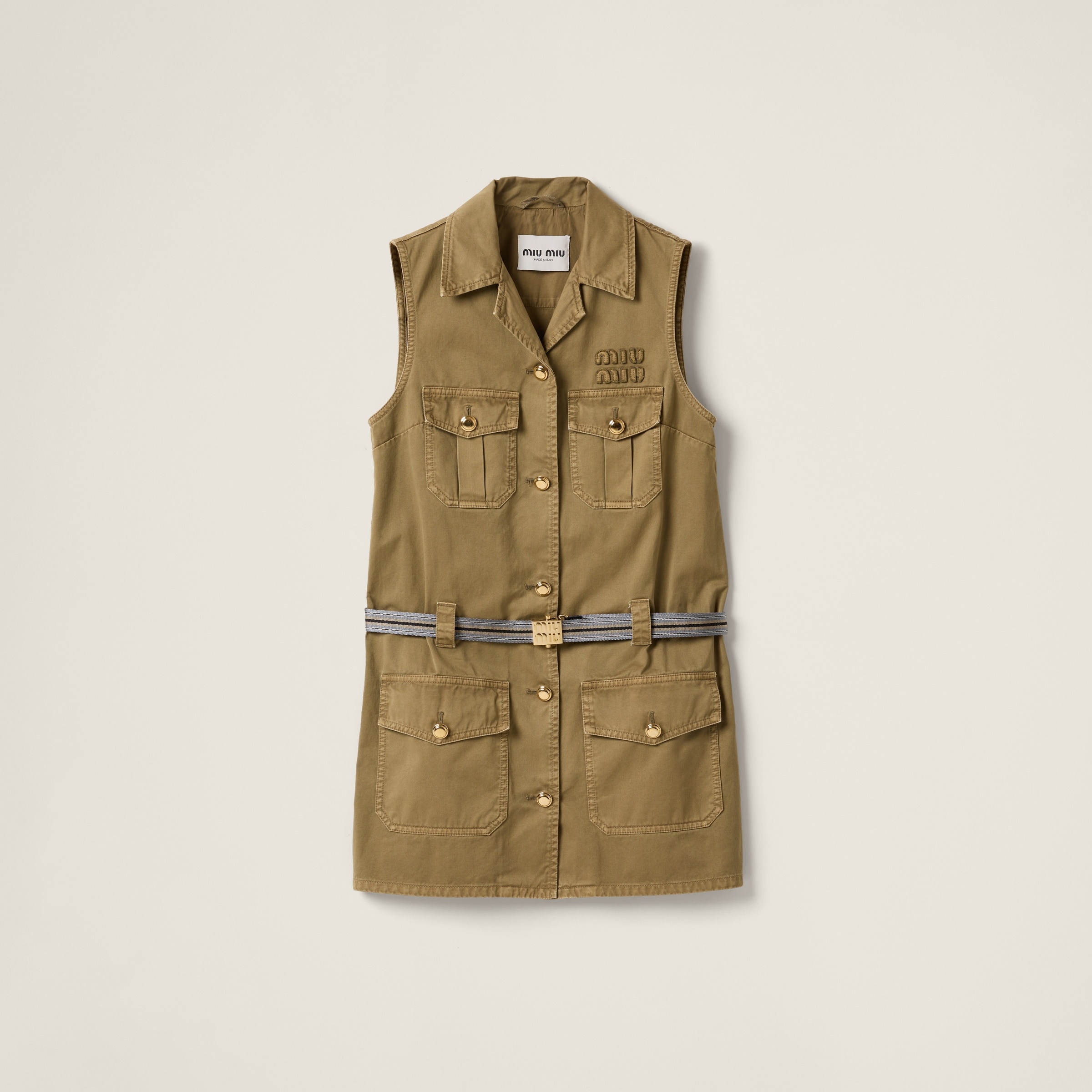 The style of this garment-dyed cotton satin dress is embellished with distinctive gold buttons and the detail of the logo-print belt, which give the garment elegant, vintage charm. - Product code: MF5714_16MS_F0393_S_OOO - Classic fit - Sleeveless garment - Bowling collar - Straight hem - Front button closure - Patch pockets on the front - Lettering logo - Imported - The model is 177 cm tall and wears a size 38 Height 80cm Materials Main material: 100% Cotton