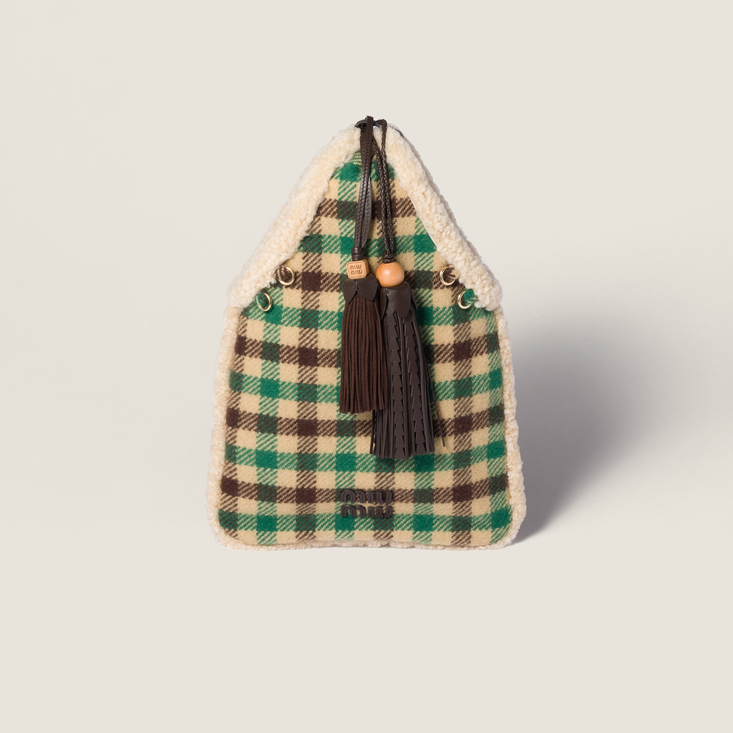 The classic gingham pattern enhances the retro inspirations of this bag, enriched with soft shearling finishes, leather tassels with a playful touch, and small rings on the front designed to create original combinations with accessories and tricks. - Product code: 5BA295_2ID6_F0HDZ_V_OOO - With removable tassels - Shearling interior with patch pocket - Gold-tone hardware - Leather lettering logo on the front - Imported Height 37cm Width 24cm Materials Main material: Polyamide Virgin Wool