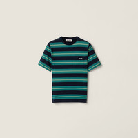 A vibrant stripe motif characterizes this jersey tee. The logo patch stands out on the garment thanks to its iconic note. - Product code: MJN537_14RT_F046I_S_OOO - Slim fit - Crew-neck - Short sleeves - Logo patch - Twin-needle hem - Imported - The model is 176 cm tall and wears a size 38 Height 59cm Materials Main material: 100% Cotton
