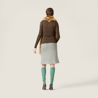 Iridescent reflections of Lurex transform the clean lines of this knit skirt, offering a new interpretation of ribbed knit fabric and the refined balance between contemporary femininity and timeless elegance. - Product code: MMG558_176W_F0A43_S_OOO - Ribbed knit - Flared fit - Knit logo patch - Imported - The model is 177 cm tall and wears a size 38 Height 54cm Materials Main material: 34% Metal/Metallic 66% Viscose