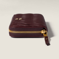 The iconic Matelasse motif reflects Miu Miu's refined artisan codes, enhancing the sleek, elegant design of this nappa leather wallet. - Product code: 5ML506_AFPP_F0007 - Matelasse workmanship - Zipper closure - Two bill compartments - Eight card slots - Two internal pockets - Internal zipper coin pocket - Moire lining - Metal lettering logo - Imported Height 9.5cm Width 19.5cm Materials Main material: Lambskin