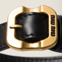 The gold buckle detail inspired by the SS25 fashion show riches the design of this soft leather bracelet, enhancing the bold character and offering versatile styling options. - Product code: 5IB715_AE6Y_F0632 - Metal buckle closure - Visible logo - Available in sizes: S/M/L - Imported Height 1.5cm Materials Main material: Calfskin