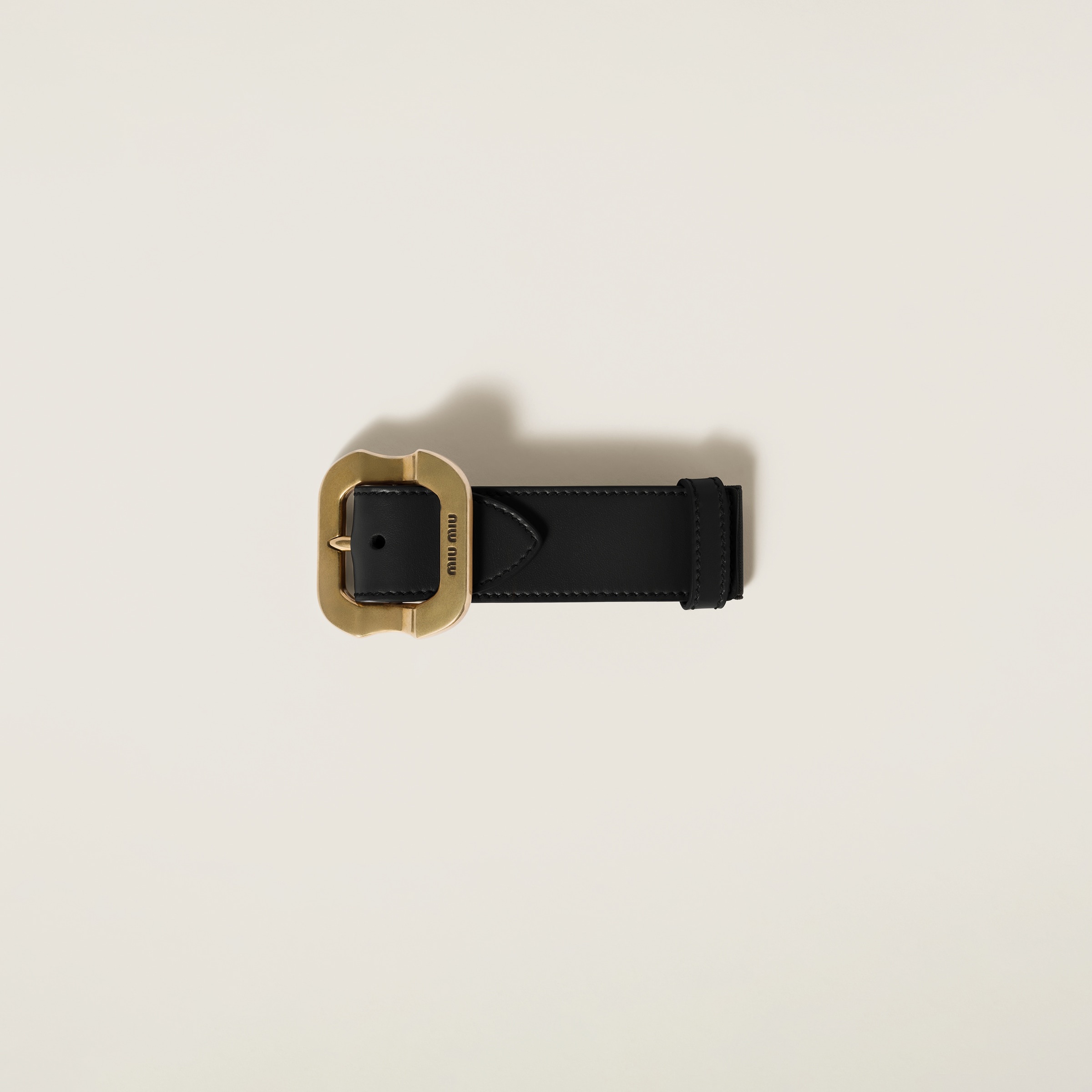 The metal buckle that recalls the belt detail gives this bracelet a sophisticated, vintage mood that is perfect for embellishing looks full of contrasts. - Product code: 5IB654_2E6Y_F0632 - Metal buckle closure - Engraved logo on buckle - Available in S/M/L - Imported Height 3.5cm Materials Main material: Calfskin
