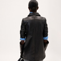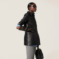 Vintage-inspired details define the silhouette of this leather coat, which features a slim cut, three-quarter-length sleeves, and embossed logo lettering. - Product code: MPS732_15YZ_F0002_S_OOO - Lined - Regular fit - Front button closure - Slit at back - Shirt collar - Three-quarter length sleeves - Slash pockets - Embossed logo lettering - Imported - The model is 179 cm tall and wears a size 38 Height 73cm Materials Main material: Calfskin