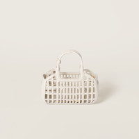 A refined woven motif defines the distinctive structure of this soft nappa leather bag that recalls summer inspirations and reflects the elegant sophistication of the Miu Miu collection. - Product code: 5BA294_2IBE_F0K74_V_OOO - Open basket-weave motif - Detachable, adjustable leather shoulder strap. Minimum length: 105 cm - Maximum length: 115 cm - Minimum drop: 52 cm - Maximum drop: 58 cm - Removable trick - Gold-tone hardware - Metal lettering logo on the front - Imported Height 12.5cm Width 24cm Length 9cm Materials Main material: Calfskin