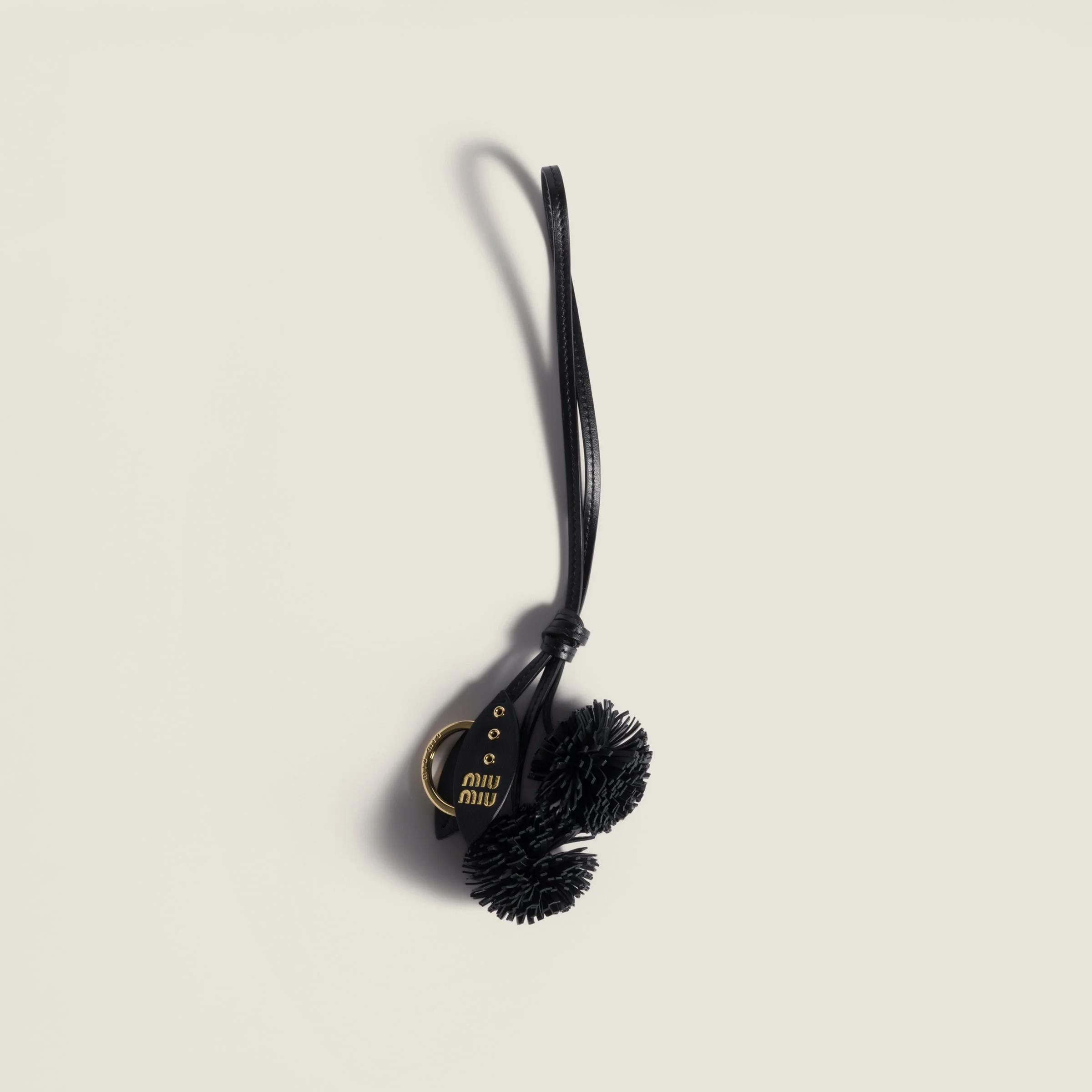 The floral design of this key ring trick is combined with bold metal studs to create a strong contrast that enriches bags and accessories. The Miu Miu logo enhances the iconic attitude. - Product code: 5TL516_2IGI_F0002 - With metal ring - Metal lettering logo - Imported Materials Main material: Calfskin