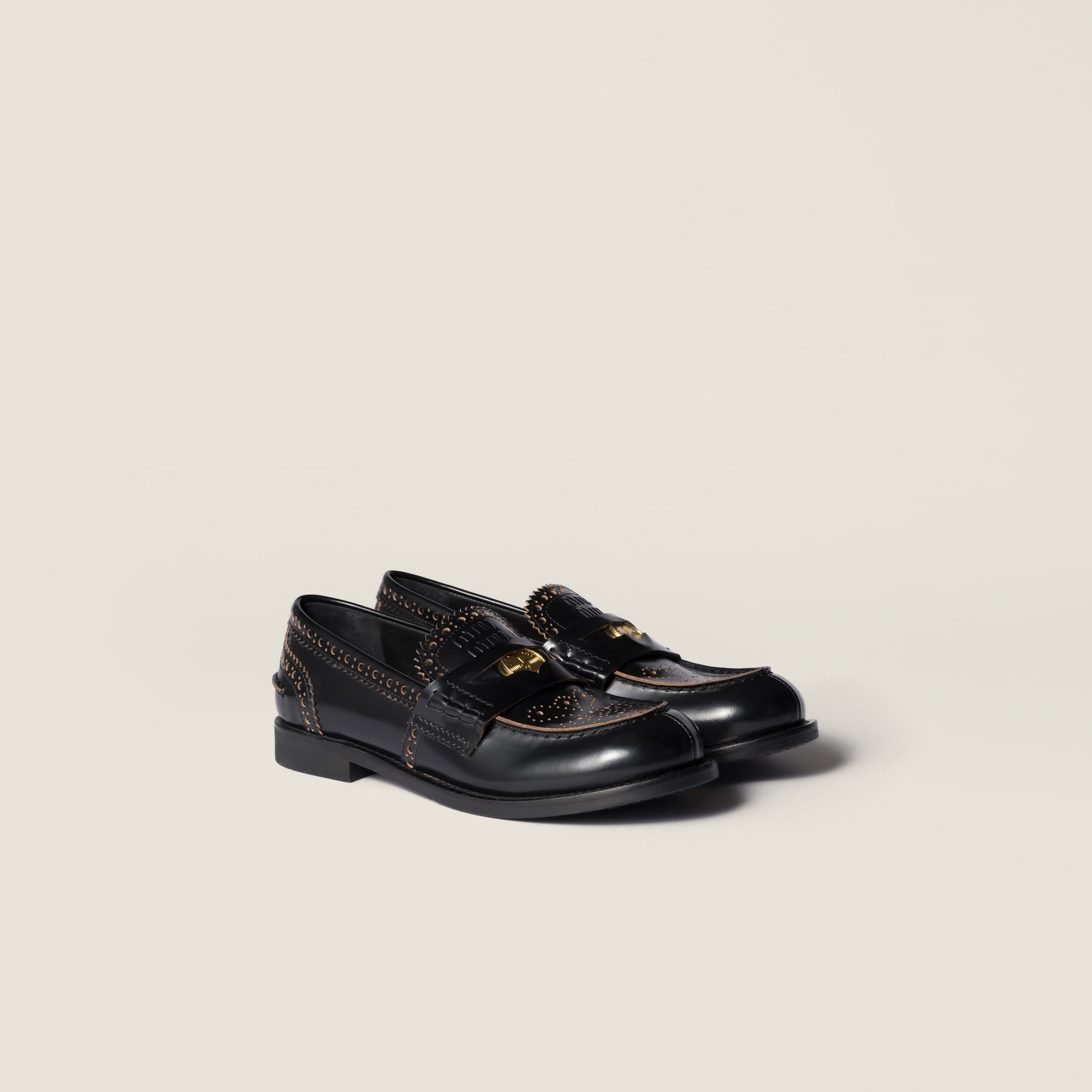 These loafers inspired by the codes of the preppy uniform stand out for the penny detail and particular perforated leather that adds an artisan character and elegance to their iconic silhouette. - Product code: 5D506E_070_F0002_F_020 - Upper with perforations - Apron with leather band and logo-engraved coin - Rubber sole - Heel height: 20 mm - Leather insole - Logo embossed on the tone and screen-printed on the insole - Imported Materials Main material: Calfskin