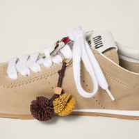 Miu Miu's bold, playful character comes to life in this soft leather micro trick with wooden logo that enriches the silhouette of sneakers and bags, creating new style combinations. - Product code: 5ID008_2FLQ_F04MV - Waxed cotton cord - With wooden detail - Engraved logo on detail - With removable metal snap-hook - Imported Materials Main material: Lambskin
