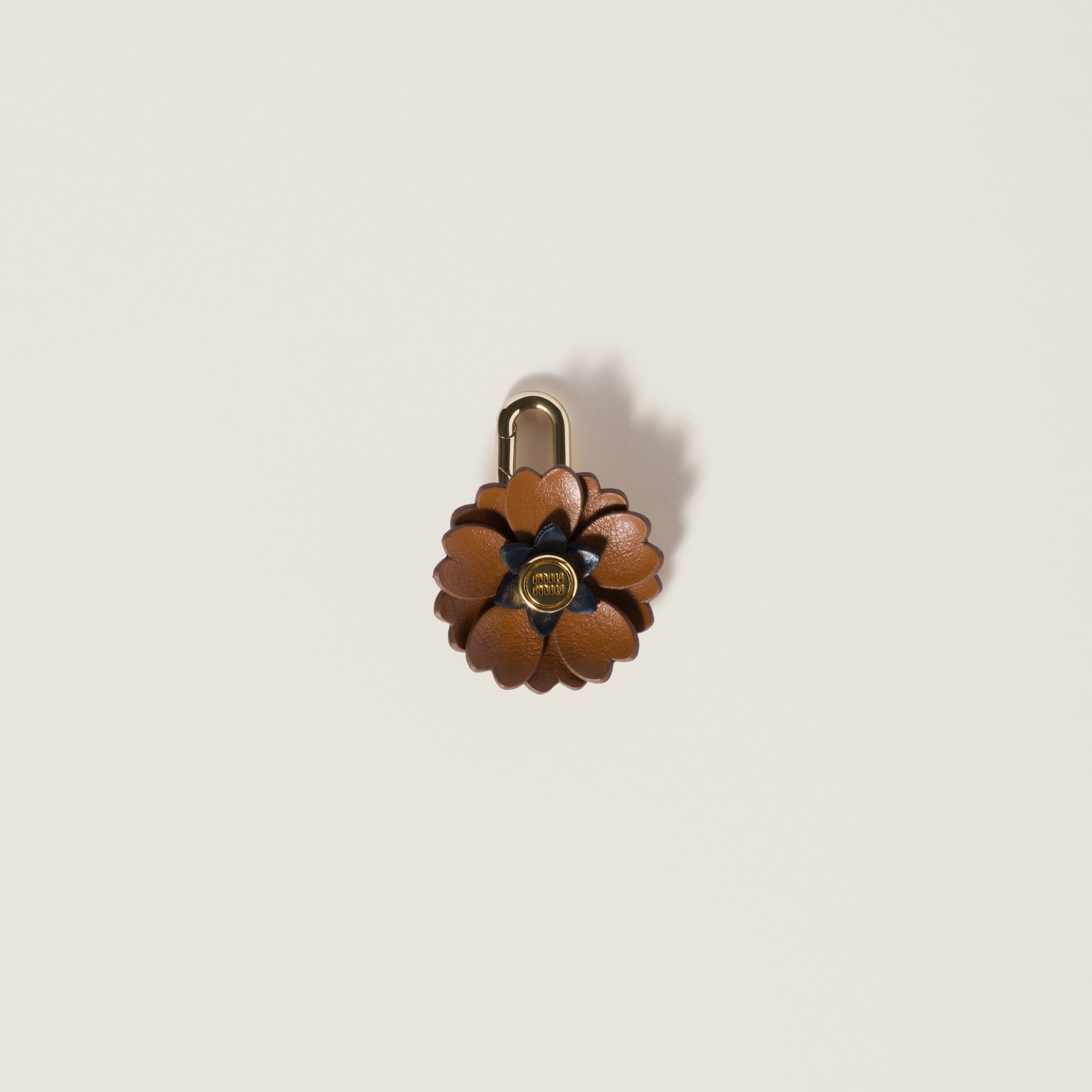 Miu Miu's elegant, playful character comes to life in this flower-inspired micro trick that enriches the silhouette of sneakers and bags, creating unique style combinations. - Product code: 5ID016_2FLQ_F0EH7 - With metal snap-hook - Engraved logo on detail - Imported Height 3cm Width 3cm Materials Main material: Calfskin