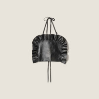 The elegant ruffled detail enhances the femininity of this leather top inspired by vintage pinafores. The slightly distressed texture obtained through an artisan process performed by hand interprets luxurious and audacious allure. - Product code: MPT330_19MM_F0002_S_OOO - Regular fit - Vintage treatment - Back closure with straps - Unlined garment - Ruffle detail - Fabric logo label - Imported - The model is 177 cm tall and wears a size 38 Materials Main material: Calfskin