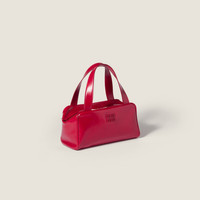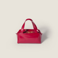 Compact and versatile, this new interpretation of the top-handle bag stands out for its flat handles, the elegant logo on the front and the subtle sheen of soft calf leather, reflecting Miu Miu's sophisticated experimentation. - Product code: 5BB182_2IEO_F0041_V_MOO - Leather handles - Gold-tone hardware - Zipper closure - Cotton satin interior with double zipper pocket - Leather lettering logo on the front - Imported Height 15cm Width 28cm Length 13cm Materials Main material: Calfskin