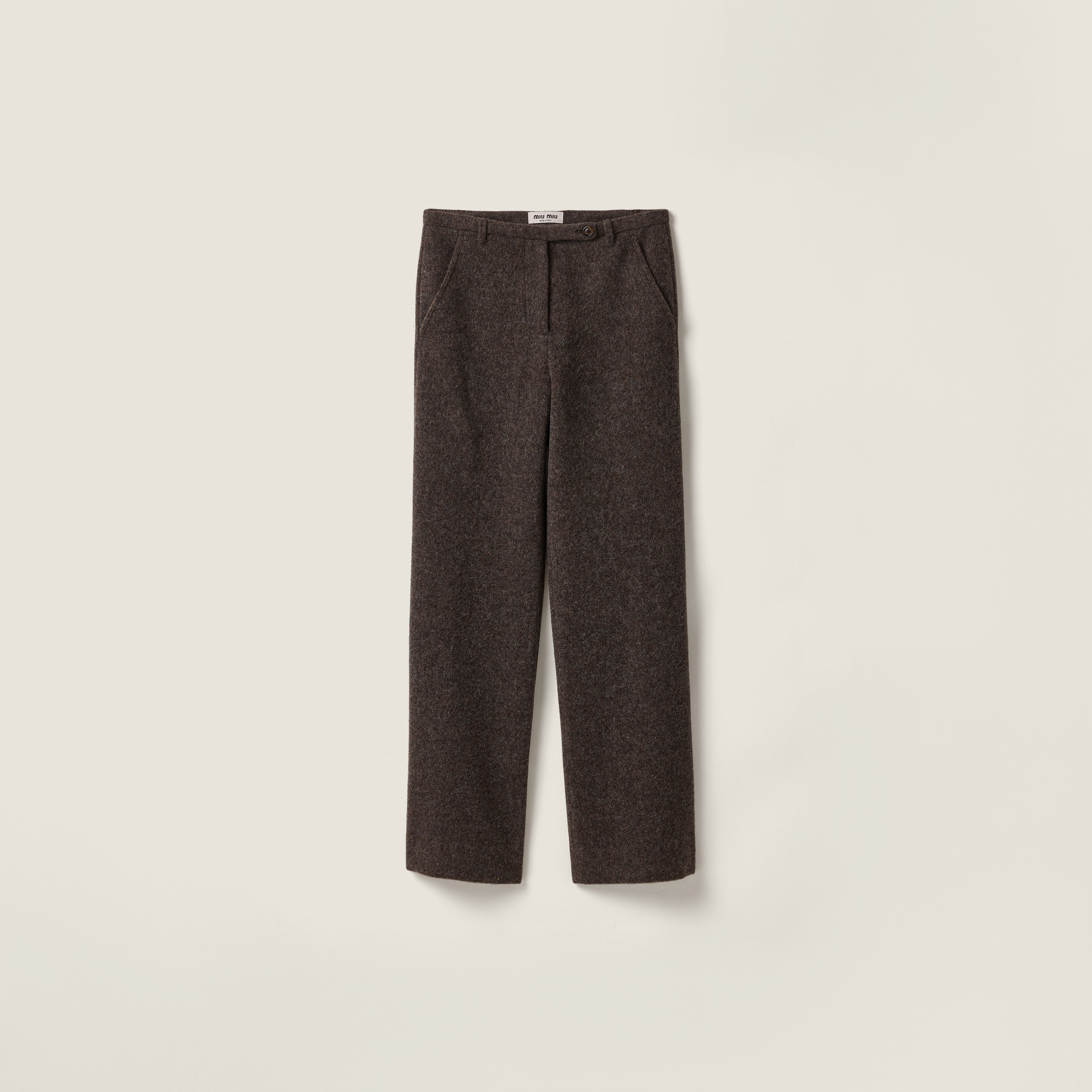 These pants, an emblem of the classic wardrobe, reinterpret the tailored menswear cut. This new interpretation of feminine elegance is enhanced by the soft fit and the authentic, light texture of Shetland wool. - Product code: MP1931_1744_F0192_S_OOO - Menswear fit - Lined garment - Zipper fly with button - Angled front slash pockets - Back welt pockets - Embroidered logo - Imported - The model is 177 cm tall and wears a size 38 Height 110cm Materials Main material: 100% Wool