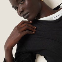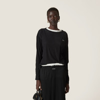 Miu Miu's logo patch enriches the simple lines of this tee, adding an iconic and distinctive character to the garment. - Product code: MJL939_133O_F0002_S_231 - Straight fit - Crew-neck - Long sleeve - Logo patch - Twin-needle hem - Imported Height 64cm Materials Main material: 100% Cotton