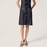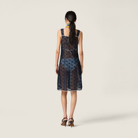 Precious macrame defines the floral motif of this dress in brilliant colors inspired by the classic house dress and transformed into a symbol of bold femininity with sophisticated contrasts and layering. - Product code: MF6354_19KL_F0008_S_OOO - Flared fit - Lined garment - Straight neckline - Front button closure - With removable slip - Knit logo label - Imported - The model is 177 cm tall and wears a size 38 Height 102cm Materials Main material: 100% Polyester