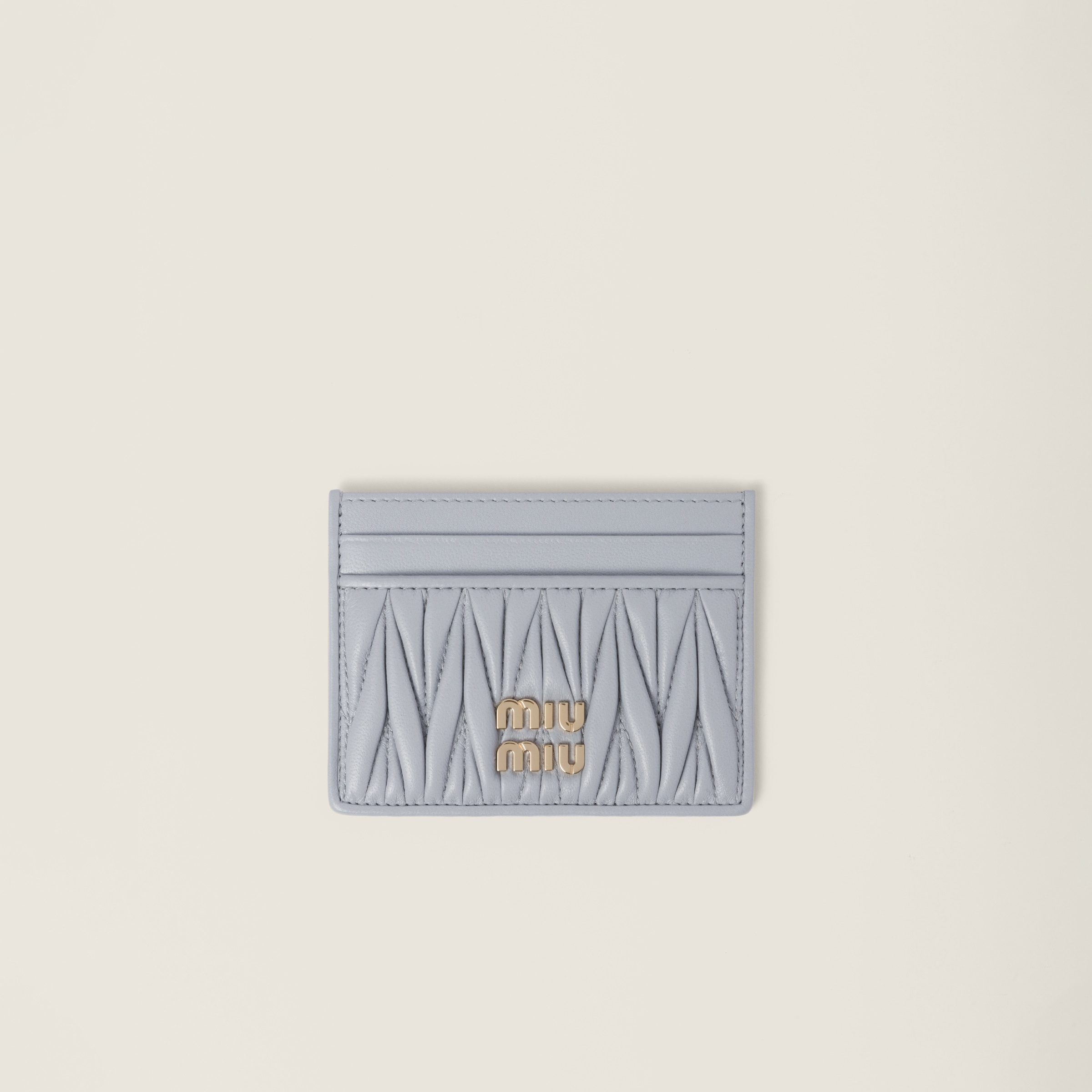 This compact accessory blending form and function is enhanced by the matelasse workmanship of the leather. Equipped with card slots, it is decorated by the vertical metal lettering logo. - Product code: 5MC076_AFPP_F0164 - Matelasse motif - Metal lettering logo - Six card slots - Moire lining - Imported Height 8cm Width 10.5cm Materials Main material: Lambskin