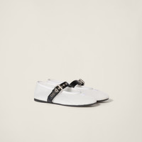 The iconic allure of the Miu Miu ballerina flat finds new expression in this summery mesh fabric version featuring an elegant texture and bold strap closure. - Product code: 5F373E_099_F0009_F_005 - Upper with strap - Rubber sole - Leather-covered insole - Logo embroidered on the upper and screen-printed on the insole - Imported Materials Main material: Polyester