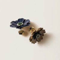 The charm of the floral world pays homage to Miu Miu style codes in the contrast between enameled metal and leather on these earrings with a precious, summer essence. - Product code: 5IO264_2IDA_F04M9 - With enameled metal and leather floral elements - For pierced ears - Engraved logo on the back - Imported Width 3.3cm Materials Main material: Brass