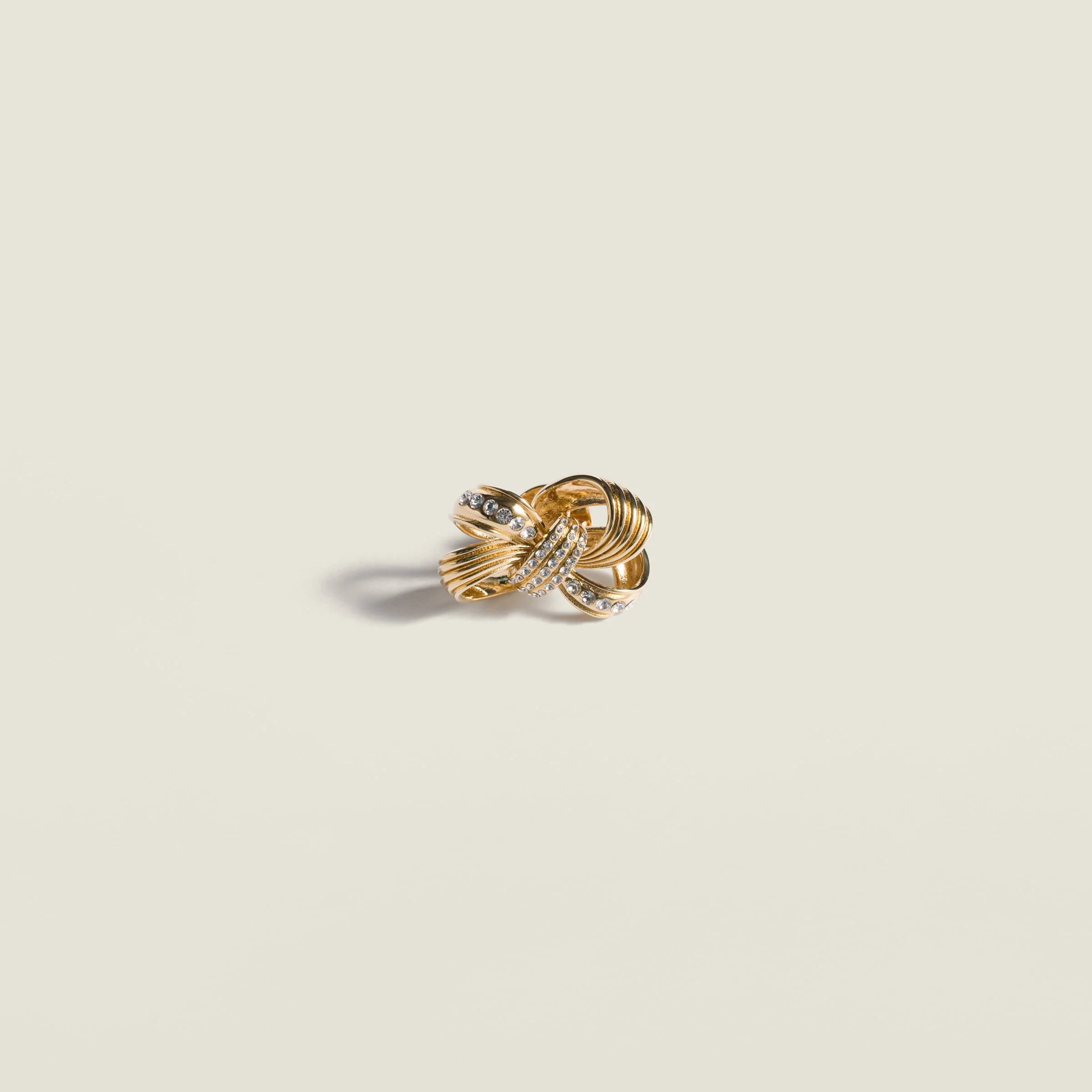 The intertwined bow design of this brooch blends sculptural volumes and classic references enhanced by sparkling crystals that animate sleek looks with elegance and character. - Product code: 5IS137_2IF1_F05F8 - With synthetic crystals - Butterfly clasp on the back - Imported Height 1.8cm Width 2.8cm Materials Main material: Brass