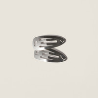 Miu Miu's emblematic logo is the protagonist of this elegant hair clip with a sleek line that makes it a versatile, precious accessory. - Product code: 5IF291_2DTU_F0276 - Set of 2 clips - Width 4 cm - Visible perforated logo - Imported Width 4cm Materials Main material: Brass