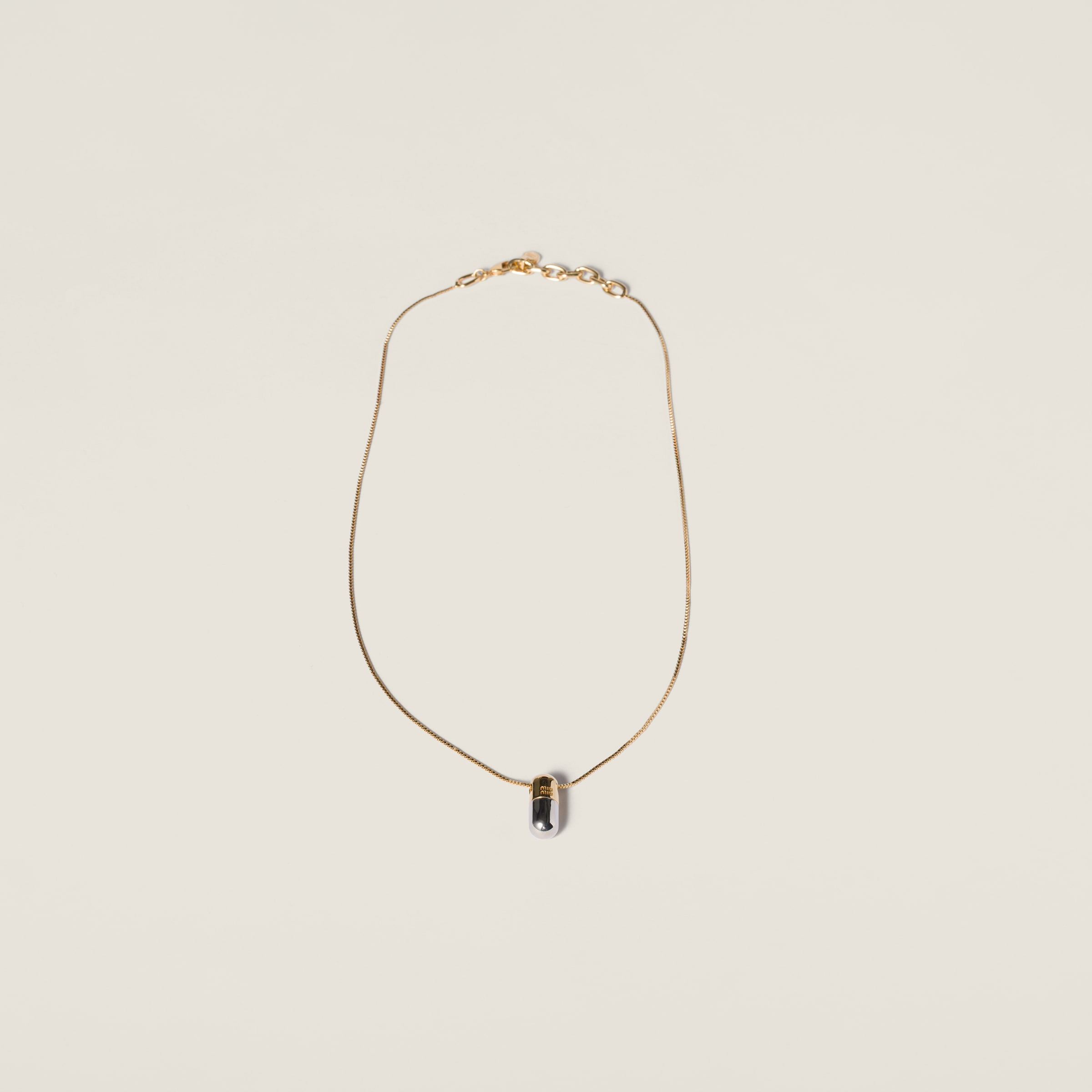 Pure lines meet the character of a delicate two-tone pendant on this necklace with a refined, contemporary design. - Product code: 5IC220_2IDQ_F0BSU - Lobster claw clasp - With logo-engraved detail - Visible engraved logo - Imported Width 61.5cm Materials Main material: Brass